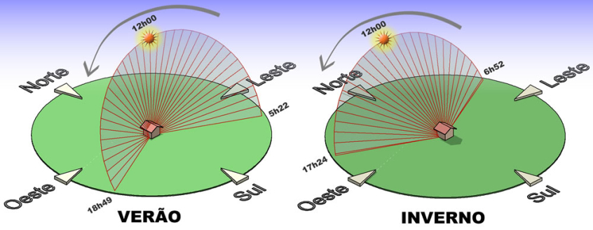 No hemisfério Norte a situação se inverte: janelas voltadas para o Sul pegarão mais sol, especialmente nas localidades mais distantes do equador.