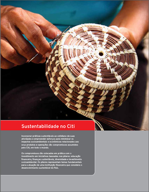 O que está escrito no texto, acredite se quiser: "Sustentabilidade no Citi – Incorporar práticas sustentáveis ao cotidiano de suas atividades e empreender esforços para minimizar os impactos socioambientais e econômicos relacionados aos seus produtos e operações são compromissos assumidos pelo Citi, em todo o mundo."
